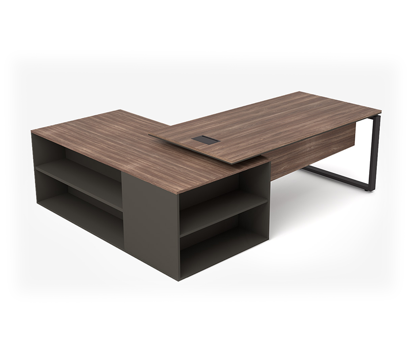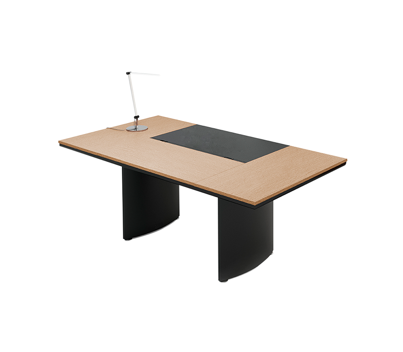 Arquitetura para trabalhar, produzida com materiais nobres, acabamento impecável e um design atemporal, onde o destaque é o balanço inusitado de seus tampos.