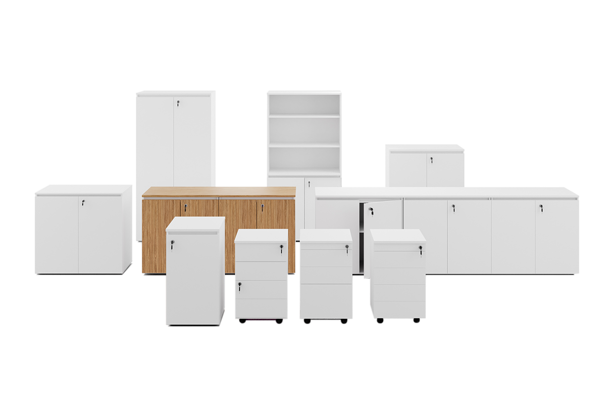 Diversos modelos de armários e gaveteiros completam a linha Lean.
