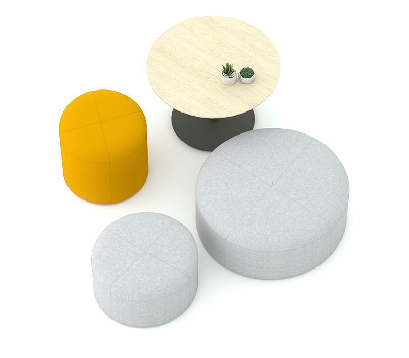 Em 03 tamanhos e 02 alturas, possibilita a criação de espaços distintos, desde uma simples aproximação, até espaços mais lúdicos e divertidos.