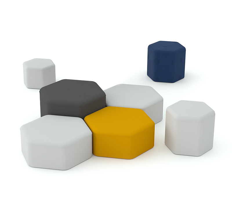 Perfeitos para serem usados em composições do tipo ilha, com tamanhos e alturas variados, criando diferentes espaços sensoriais, alegres e divertidos.